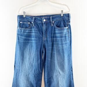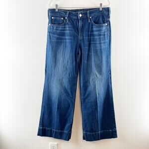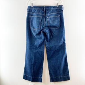 low slung, pockets, dark wash, trouser jeans, wide leg, cotton, denim, jeans, blue
