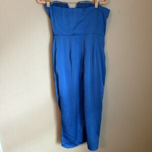 Do and Be Strapless Dress Satin Blue Asymmetrical Hem Elegant Cocktail Size M