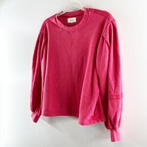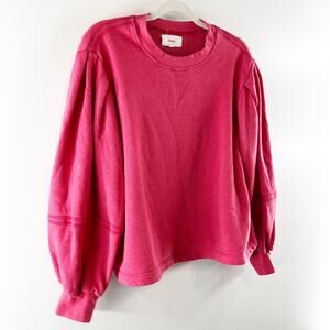 long sleeve, crew neckline, pullover, relaxed fit, puff sleeve, solid pattern, loungewear, casual, barbiecore, streetwear, everyday wear