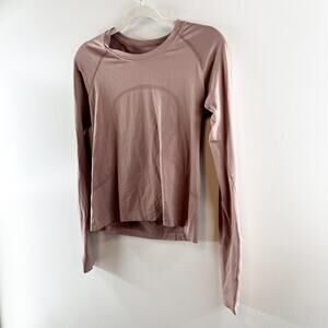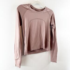 long sleeve, thumb holes, stretch, crewneck, slightly cropped, race length, running, workout, pink, purple, yoga