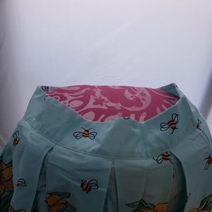 Alice in Wonderland inspired wildflower skirt. This size L adorable pleated midi skirt has a banded waistband with a zipper closure, and it has POCKETS! NWOT, never worn. Large vibrant wildflowers along the bottom give way to tiny buzzing bees along the top. Mid-century modern feel, perfect for Dapper Day. Could be dressed up or down. It is seriously such a great peice!