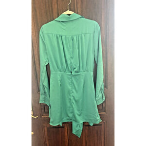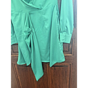 Do+Be Green Satin Long Sleeve Faux Wrap Dress Size M