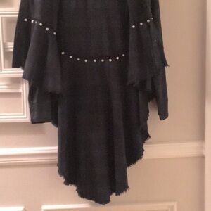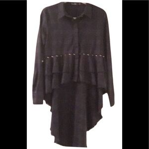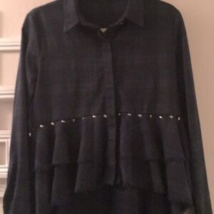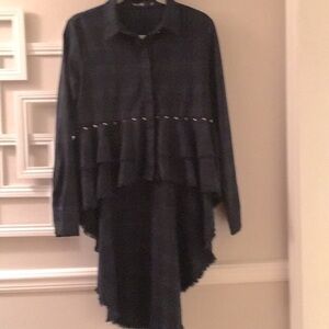 Do+Be Hi Lo Tails Ruffled Tiers Plaid Top Jacket Green Blue Studded Size Small