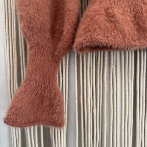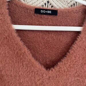 Do+Be v-neck sweater in a soft, fuzzy fabric, size Small, good used condition. Gorgeous fall color with delicate sleeve detailing. Cozy, stylish, and perfect for layering or casual autumn outfits. Measurements in photos.