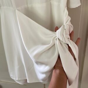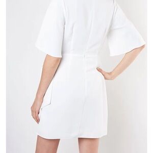 Do+Be White Faux Wrap Tie Waist Flutter Sleeve Dress