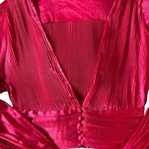 Do+Be Women's Pink Pleated Deep V Long Sleeve Blouse