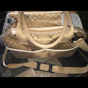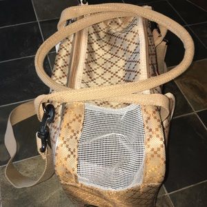 Canvas durable pet carrier. Perfect for travel. Zipper top with Velcro and safety snaps. Multi vents and mesh see through for comfort of seeing owner. Perfect for tea cup dogs or cats. Carry handle and shoulder strap