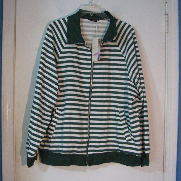 *DoKoToo Zip Up Jacket 2XL Plus Size NWT Green White Stripe Pockets Cotton Blend