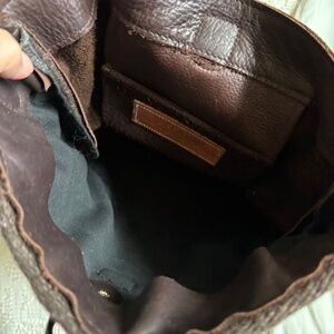 Bought at the Fort Worth stockshow and rodeo! It is a super gorgeous leather purse with an Aztec front in earth tones. . In Very Good pre owned condition! Brass buckle closure opening up to a roomy carry. Open pocket on side wall with signature. Crossbody, shoulder carry. Smoke Free Home.