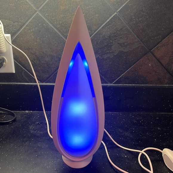 Excellent condition ! Original box has some tape where it had been put back together. The diffuser has a small scratch you can see when it is not on. When it’s blue it doesn’t show.