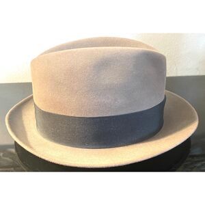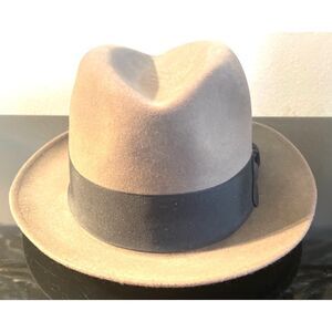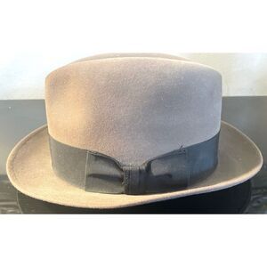 Dobbs Fifth Avenue Vintage Grey Wool with Black Band No Feather Fedora Hat 56/7