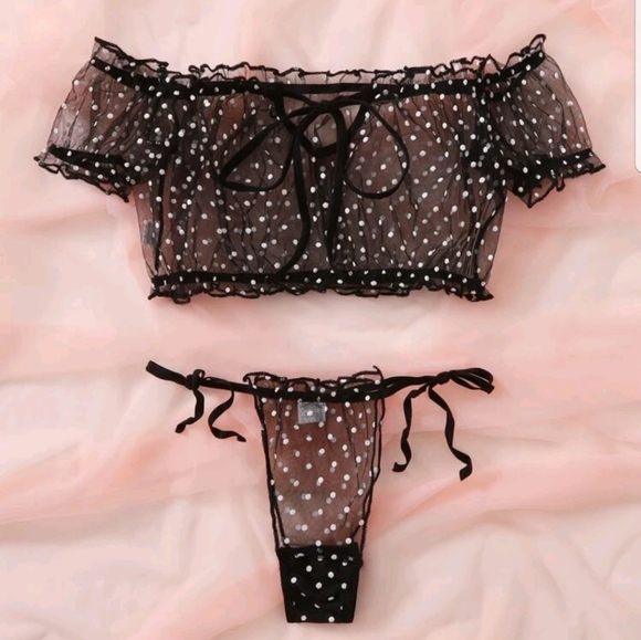 Dobby Mesh Ruffle Lingerie Set