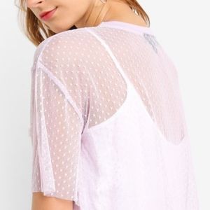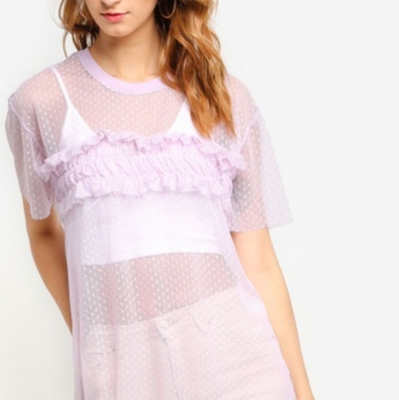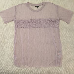 Topshop mesh shirt.Lilac color with ruffle detail on chest. Very pretty color. 100% polyester. Only worn once.