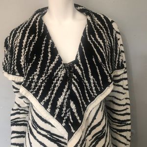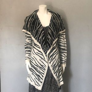 100% acrylic black and white cardigan please see measurements 80 cm long and 67 cm long sleeves