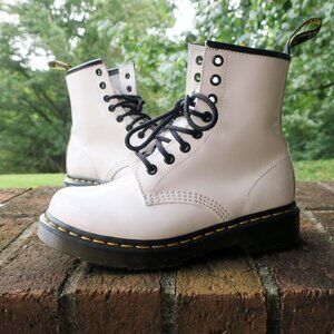 Dr. Martens 1460 White Patent Lamper Leather 8-Eye Boots.
