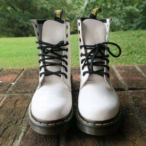 Dr. Martens 1460 White Patent Lamper Leather 8-Eye Boots.