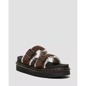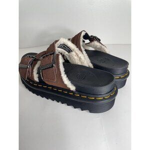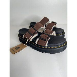 Doc Dr. Martens Myles Suede Fur Lined Buckle Slide Brown Sandals 37 US 6 NWT