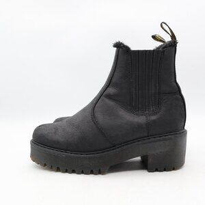 Doc Dr. Martens Rometty FL Faux Fur Lined Chelsea Boots Women's 8 Black Leather