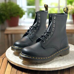 Dr. Martens 1460 Smooth Leather Boots. Known for their durability and comfort, these 8-eye boots feature a smooth leather upper, signature yellow stitching, and the iconic AirWair pull tab. Built with a Goodyear welt and air-cushioned sole for everyday wear.