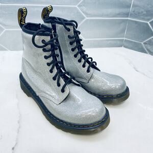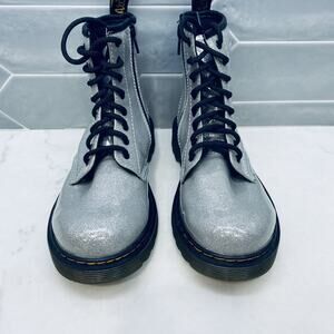 Doc Martens 1460 Glitter J Boots Youth Size 3 Silver Lace Up Combat Shoes Girls