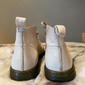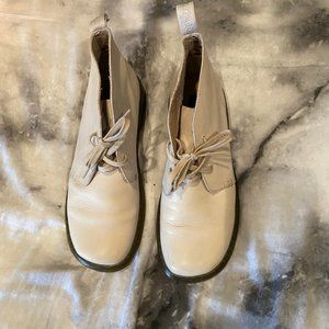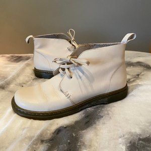 "Cynthia" Doc Marten chukka boots in "bone". White leather upper with slip-resistant rubber sole. Super lightweight and comfortable. Only worn once. Doc size 9, I usually wear a 10 but I wear 9 in this brand (runs a bit big, in my opinion)
