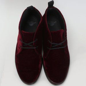 Lightly work, maroon velvet Doc Martens size 6. Comfortable and warm, unisex shoe.
