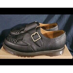 The Doc Martens Ramsey Monk KLT Suede Monk Strap in black is a stylish and comfortable casual shoe for men. Made by Dr. Martens in the United Kingdom, this shoe features a solid black suede upper with a leather lining. The adjustable buckle closure and cushioned outsole provide added comfort and breathability, making it perfect for everyday wear. With its timeless loafer style and quality craftsmanship, the Ramsey Monk KLT is a versatile and fashionable option for any man's wardrobe.