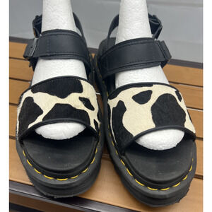 Doc Martens Voss Hair On Sandals - Black + Medium Cow Print - Size 8W US