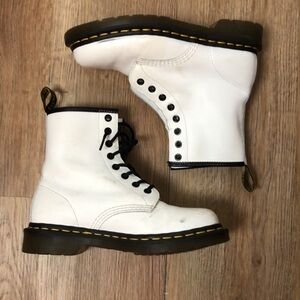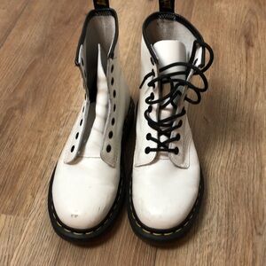 Doc Martens White Ribbon Lace Up Combat Boots Size US men’s 5/ Womens 6 (though these fit me as a women’s 7), EU 37