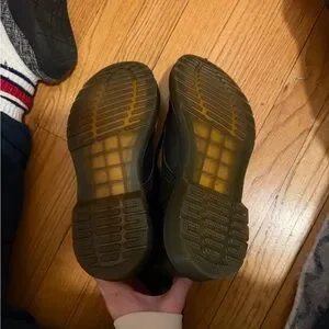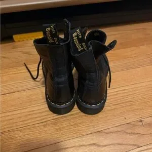 Stylish black leather lace-up boots with a rugged sole. Perfect for any casual outfit.