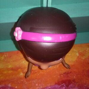 Doc Mcstuffins Doll in purple & pink scrubs with a mini doc