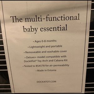 The DockATot Deluxe+ dock is an award-winning multifunctional docking station for babies 0-8 months old. The Deluxe+ dock is the ideal spot for babies for supervised lounging, playing, cuddling, diaper changes and tummy time. Created to mimic the womb and voted as a must-have baby product from parents around the world, it can be used around the house and is ideal for travel. The Deluxe+ dock passes robust testing to ensure a safe environment for little ones. Made in Europe. Features include air permeability and Oeko-Tex Standard 100 Class 1 certification (testing for harmful substances).