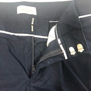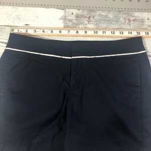 Navy blue with white trim, zipper and double slide clasp closure, no size or material tags PLEASE see pictures for measurements, flat front, 2 pockets, colors may vary due to lighting, Good used condition,Size: 10-12 ????
