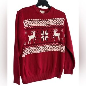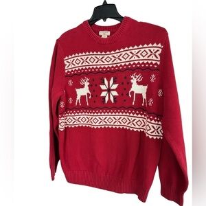 Docker Ugly Christmas Sweater Deer Cotton Pullover Mens XL Red Cotton Snowflake Ski Classic Holiday