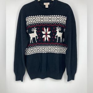 Dockers 100% Cotton Reindeer & Snowflake Black/Red Unisex Sweater Size M