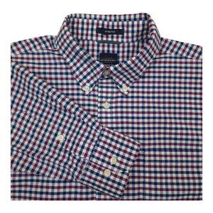 Dockers Battery Street Collection Classic Fit Stretch Shirt L Plaid Purple Navy