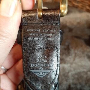 Dockers Belt Men's 32 Black Braided Leather Brass Buckle Adjustable Fish Tail