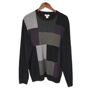 Dockers Black & Gray Color Block Patchwork Crew Neck Grandpa Sweater Sz Large