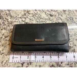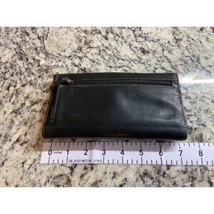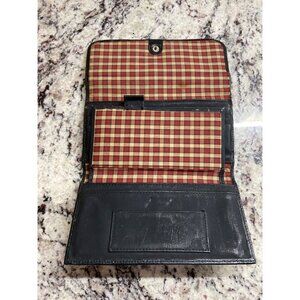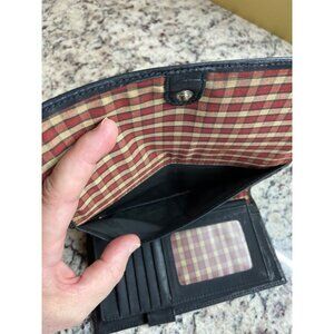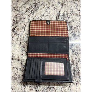 Dockers Black Leather Trifold Wallet Plaid Lining Snap ID Cardholder Vintage