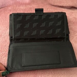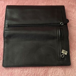 Chic black wallet with sleek design. Features secure zip closure. Perfect for daily use.