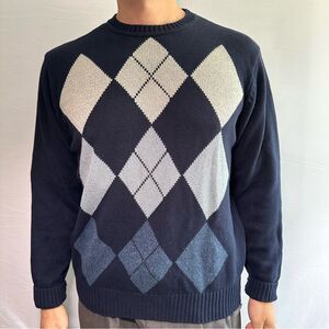 Dockers Blue and White Crewneck Sweater Argyle Pattern