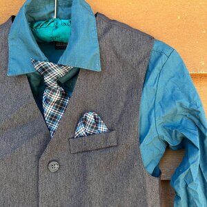 Dockers Boys Dress Shirt Vest & Clip-On Size 10 Cotton/Polyester Blend