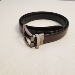 Dockers Brown Leather Belt Mens Sz 36/90 Silver Buckle 1 inch wide