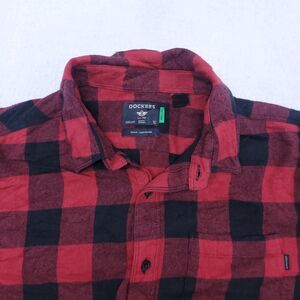 Dockers Buffalo Check Flannel Casual Button Up Shirt Mens Size M Red Black