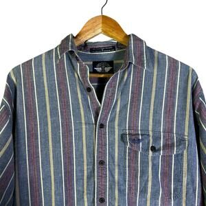 Dockers Button Down Shirt Mens S Blue Multicolor Striped 100% Cotton Retro 90s