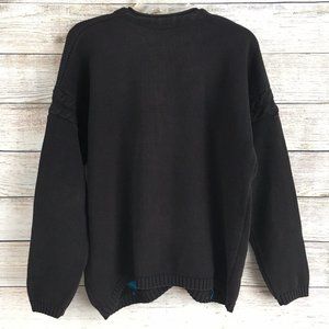 Black with blue and red diamond argyle pattern, oversized, chunky, heavy, button front, 90s vintage