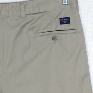 Dockers Men Chino Khaki Shorts Strain Defender Pleated Front Pockets Beige 36