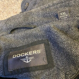 Dockers Chore Utility Jacket Wool Blend Herringbone Gray VTG Mens XXL Zip Snap