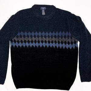 Dockers Crew Neck Sweater, Argyle, Blues and Black, Men's Medium