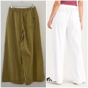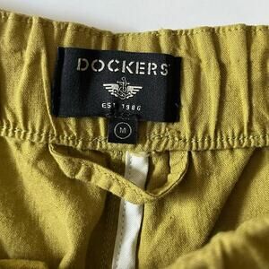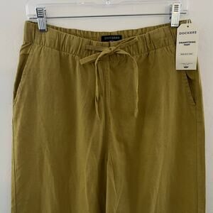 Dockers Drawstring Pant Women's M Green Cotton Linen Wide Leg Resortwear $70 NWT